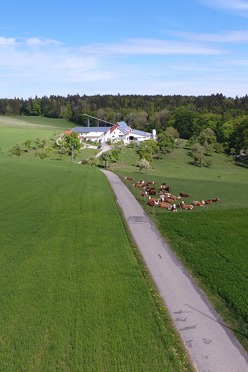 Die restlichen 50 Hektar Grünland dienen als Weide- und Futterfläche für unsere 60 Rinder, die in einer nachhaltigen und tierfreundlichen Umgebung aufwachsen.