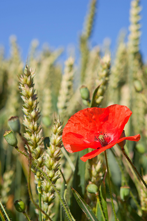 Auf 120 Hektar Land pflegen wir eine enge Verbindung zur Natur. 70 Hektar sind dem Ackerbau gewidmet, wo wir Hafer, Dinkel, Weizen und Luzerne anbauen.